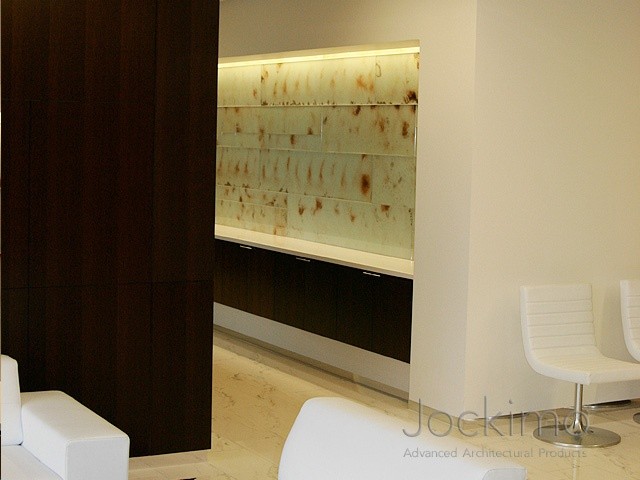 Our 9142 White MirrorUnique™ glass is utilized in the headquarters for this private investment company located in San Diego. The Mirrors were cut to specified sizes and installed applied directly to a wall.
