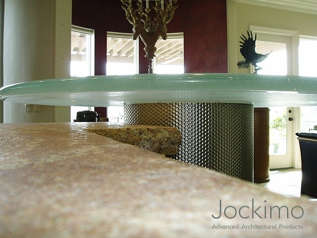 Our customer requested a thick piece of clear glass for their kitchen and luckily we have this 46" diameter 1-1/4" thick piece of glass in stock. We added a bullnose polished edge to the piece.